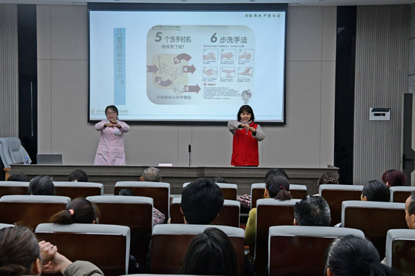 在青杠街道社區幼兒園開展正確洗手示范宣講。璧山區婦幼保健院供圖