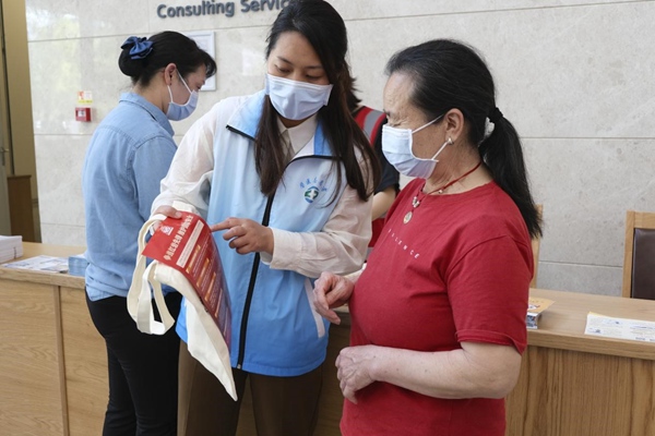向群眾發放宣傳資料。劉林杰攝