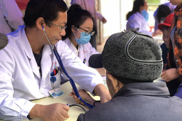 活動現場,服務隊的醫師們認真傾聽問診村民的病史陳述,耐心詢問他們的身體狀況。通過測量血壓、診脈、查體、聽診等方式診斷村民的病情,為近百名村民提供專業的康復診療,提供康復評估、針灸、手法治療等康復服務;講解常見疾病的防治知識、提高大家的健康保健意識,鼓勵村民養成積極樂觀的生活態度和生活方式,做到早發現、早診斷、早治療。