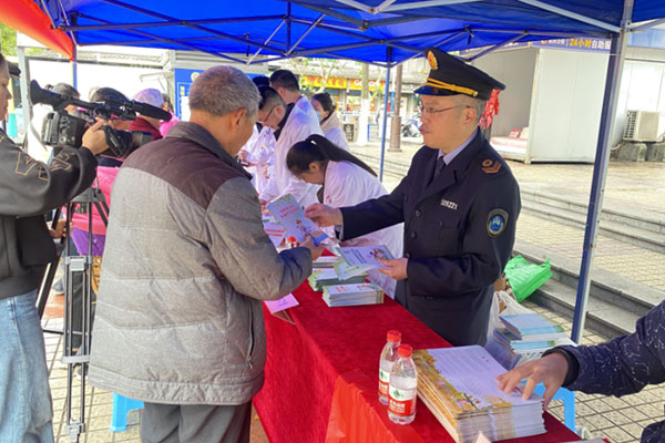 現場發放宣傳資料。石柱縣衛生健康綜合行政執法支隊供圖