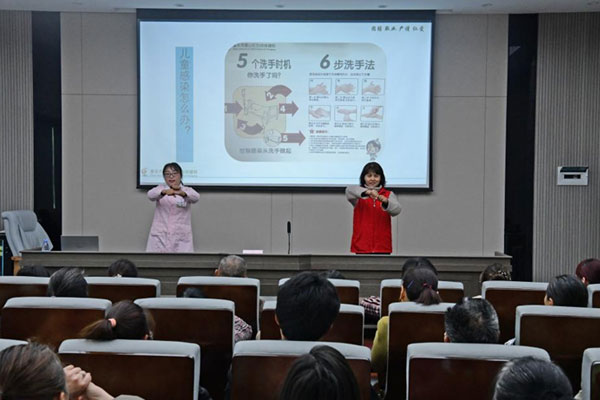 璧山區婦幼保健院針對特定群體和受眾,將愛國衛生月宣傳內容歸檔分類,以生活篇、營養篇、母嬰篇、運動篇、健康衛生小貼士等形式制作成海報、短視頻,在醫院人流較大的門診大廳、預防接種中心等地開展宣傳。同時,醫院還組織醫護人員開展“健康衛生進學?!被顒?,分別走進實驗小學永嘉校區、伊頓、牛津幼兒園,開展愛國衛生知識宣講、發放宣傳資料和宣傳文化用品,現場示范教學六步洗手法、眼保健操等內容。