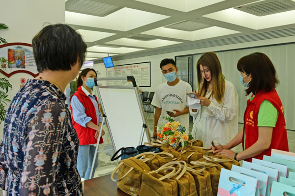 志愿者為新人發放宣傳資料。璧山區婦幼保健院供圖