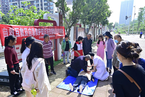 除提供義診服務外,醫院還舉行了應急救護知識與技能培訓,不少居民在醫務人員的專業指導下學習應急急救知識。