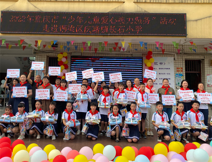 活動當天,來自銅梁區、合川區、大渡口區等重慶市區域性公共圖書館聯盟14個公共圖書館的工作人員聯合參演了“從知識的方正,走向星辰大?!崩收b節目,讓孩子們充分感受知識就是力量、知識改變命運的魄力。同時,相關愛心單位和企業還為孩子們捐贈校服、圖書、書包、跳繩、文具、小零食等實用禮物,讓他們感受來自社會大家庭的溫暖和關愛。