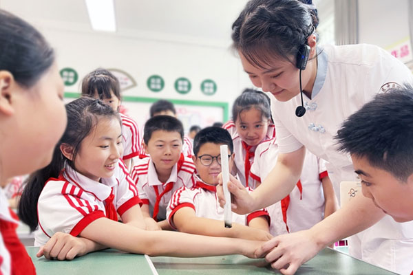 據悉,根據《璧山區中醫藥文化進校園實施方案》,璧山區中醫院開展了形式各樣的中醫藥文化進校園活動,根據大、中、小學生不同年齡、學段特點所能接受的中醫藥文化知識,運用“線下+線上”開展中醫藥系列課堂、中醫藥知識講座,向學生講解中醫基礎知識、名醫故事、養生常識、中藥辨識等內容,培養學生對中醫藥的認知和興趣,并實地互動體驗針灸、推拿等傳統中醫適宜技術治療手法,領略中醫治未病理念,讓學生們感受中醫藥文化的神奇魅力。