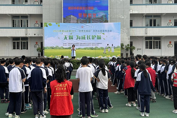 5月29日,璧山區疾控中心聯合璧山區委宣傳部、區衛生健康委、區教委等相關部門在璧山區璧泉初級中學開展“無煙,為成長護航”主題宣傳活動。此次活動中,璧山區疾控中心副主任徐玲向全校師生宣讀了控煙倡議書,并開展專題講座號召青少年要抵制吸煙誘惑,同時也要拒吸二手煙,在校學生參與積極。