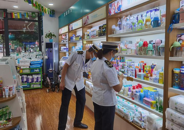 監督員正在檢查母嬰用品。巴南區衛生健康執法支隊供圖