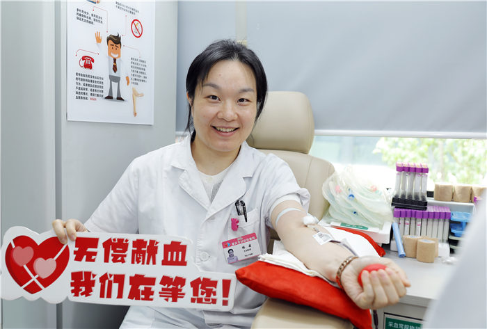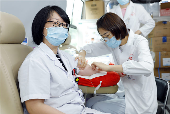 活動現場井然有序,醫護工作者們保持著安全距離,認真按照流程填寫獻血登記,完成量血壓、化驗和抽血。他們中,有剛下夜班的醫生護士,也有正在調休卻專程趕來的員工。身為醫務工作者,他們比常人更懂得臨床用血的緊張性,也更能體會血液對于生命搶救的重要性,因此得知有獻血活動,大家都主動積極報名。