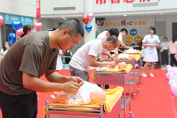 與此同時,新手爸媽小課堂也搬到了活動現場。該院產科護士長蘇健講解了新生兒護理的注意事項,并展示了如何為寶寶換尿不濕、穿衣等日常育兒技巧?,F場準爸爸們競相上臺展示“學習成果”,為迎接寶寶出生做好準備。