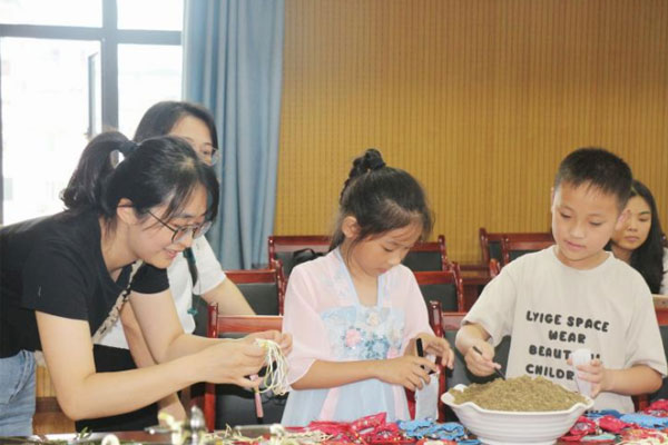 巧手制香囊,本草潤童心。在親子制香囊活動現場,工作人員向孩子們介紹了端午節的傳統習俗、生活中常見的中藥材、香囊的功效并現場教學了香囊的制作流程和技巧。在香囊制作過程中,孩子和家長們相互協作、齊心協力完成香囊的制作,現場歡聲笑語不斷,孩子們也將端午祥和、生活安康的美好祝愿裝進了小小的香囊之中。