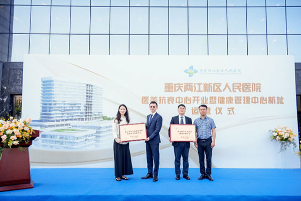 現場,重慶兩江新區人民醫院醫美抗衰中心主任單磊、健康管理中心主任王新分別發言,一同接受了醫美抗衰中心、健康管理中心授牌。