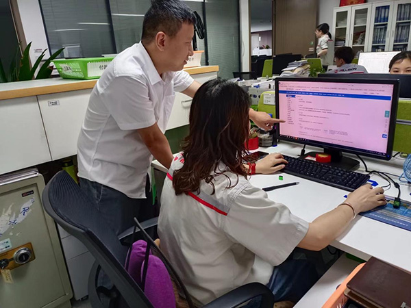 客戶經理江蘇上門指導美利信財務使用財資云系統。民生銀行重慶分行供圖