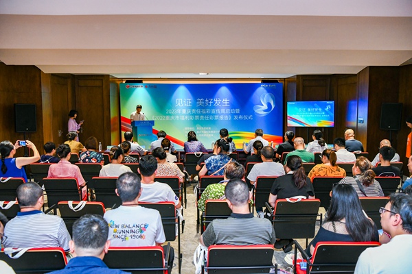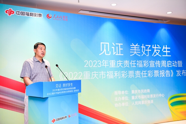 7月24日,重慶市福利彩票發行中心、人民網重慶頻道聯合舉行“見證 美好發生”——2023年重慶責任福彩宣傳周啟動暨《2022重慶市福利彩票責任彩票報告》(以下簡稱《報告》)發布儀式,這也是重慶福彩第9次面向社會發布責任彩票報告。