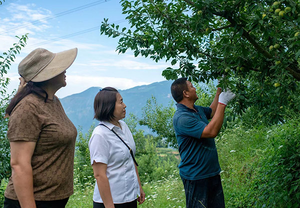 客戶經理前往脆李種植基地開展貸后檢查。重慶農商行供圖