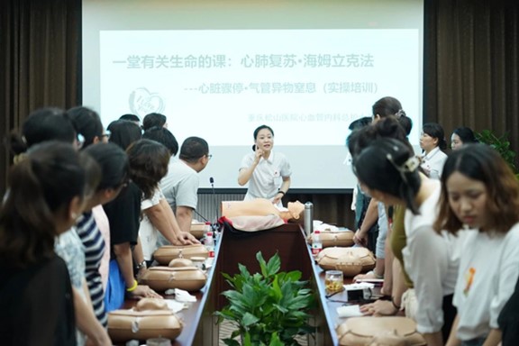 隨后,松山心血管病醫院總護士長張藝,開展了主題為《一堂有關生命的課:心肺復蘇·海姆立克法》的急救講座,強調了急救方法在生活中的重要之處。張藝表示:“如果我們學會了急救,身邊的人也都學會了急救,就可能在危急關頭挽救生命?!?/p>