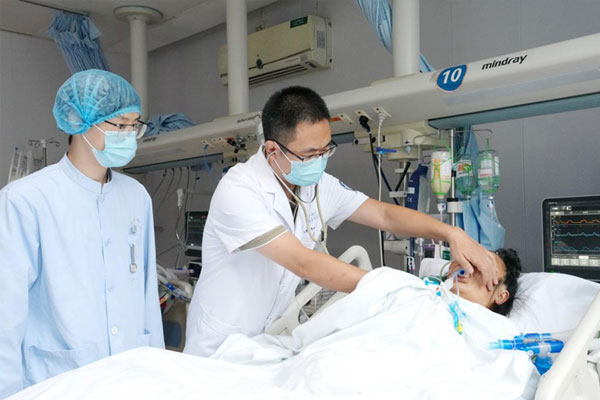 重癥醫學科副主任李建華查看患者情況。重慶大學附屬江津醫院供圖