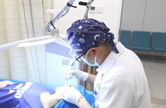 賈勇波為患者做痘坑痘印激光修復治療。重慶西區醫院供圖