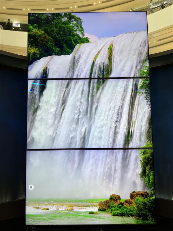 在沉浸式視聽體驗空間,三臺98英寸的三星Q80Z電視拼接成一道栩栩如生的瀑布景觀,讓觀眾仿佛置身于自然環境中。該電視采用了全陣列直入式背光技術和AI影像增強技術,以實現畫面的精細對比度和優化。
