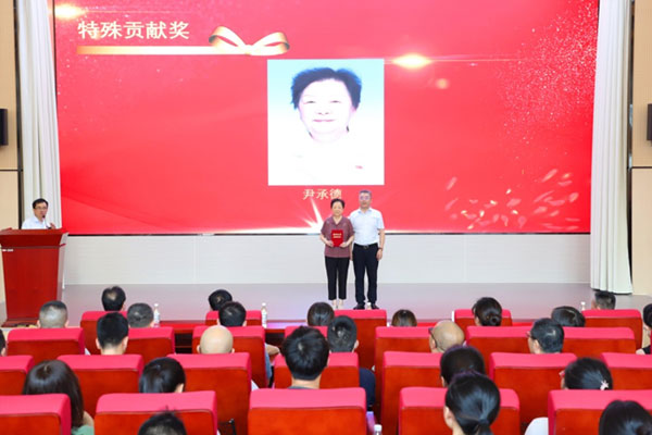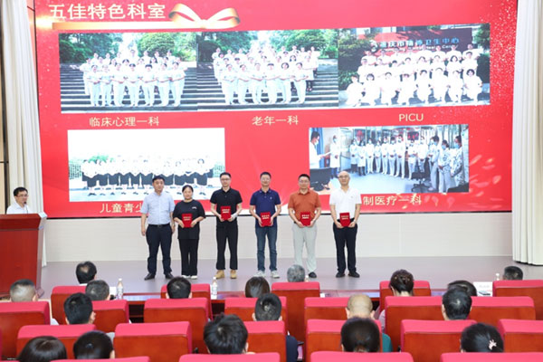 會議頒發了2023年重慶市精神衛生中心“十大名醫”“十佳醫生”“五佳特色科室”及“特殊貢獻獎”。值得一提的是,特殊貢獻獎獲得者是該中心的原院長尹承德,尹承德至今已從醫60年,目前仍堅守在醫療一線發揮著“余熱”。她在發言中表示,希望年輕一代的醫師們繼續用行動踐行醫者誓言,為人民健康做出更大貢獻。