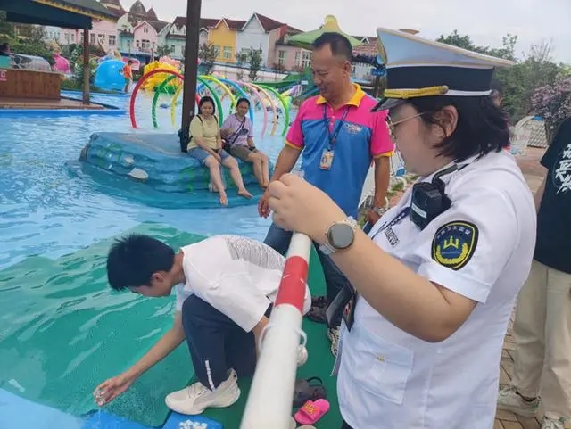工作人員在樂和樂都水上樂園采樣檢測。資料圖
