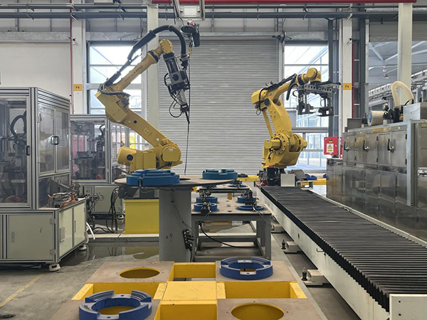 一只只機械手臂上下揮舞,自動化物料運輸車來回穿梭,百余臺機器人進行自動化生產,一座現代化的綠色智能工廠呈現在眼前?!澳壳肮S涵蓋了下料、分揀、成型、組對、焊接、噴涂、檢測、打磨、擰緊等十余類機器人,各環節緊密銜接,有序且高效?!睋恢貦C(重慶)有限公司總經理鄧荊輝介紹,車間滿負荷生產時,總裝配線上平均每隔17.3分鐘,就能下線一臺大型挖掘機。