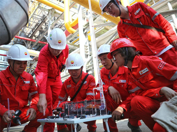 從安全方面的“受限空間風險把控”中,看見“大修為”??倧S始終貫徹以人為本的理念,把安全放在第一位,把員工的生命安全視為最高價值。大修期間,總廠首次運用能量隔離七步法,通過將盲板倒換工作全過程狀態公式化,使能量隔離狀態一目了然,節省溝通時間,提高工作效率;此外,還首次運用手機APP實時監測作業空間氣體檢測儀數據,并通過異常情況群發求救信號實現聯動救援,實現受限空間秒級預警和報警。