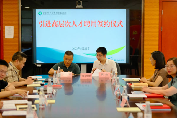 在人才簽約儀式上,醫院院長郭進軍分別與2名人才簽訂了“人才引進協議”。(重慶醫科大學附屬璧山醫院)