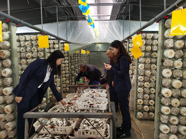 工作人員走訪菌菇農產業基地。工行重慶市分行供圖