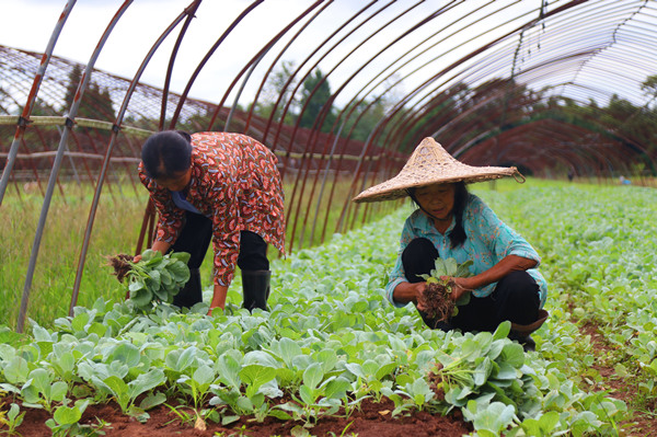 潼南區新勝鎮興三星合作社的蔬菜基地里,村民正在打理補栽的菜苗。張睿攝