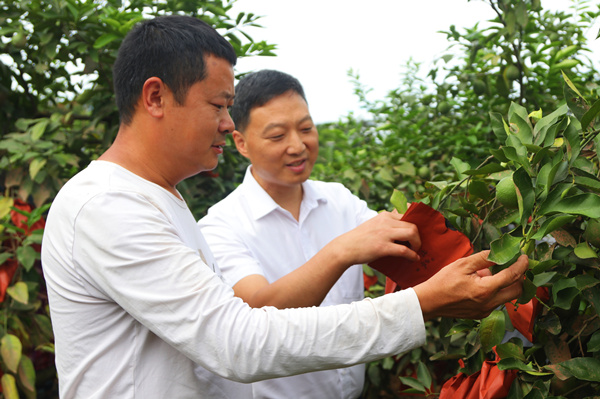 潼南民生村鎮銀行負責人到廖磊的檸檬園走訪對接。張睿攝