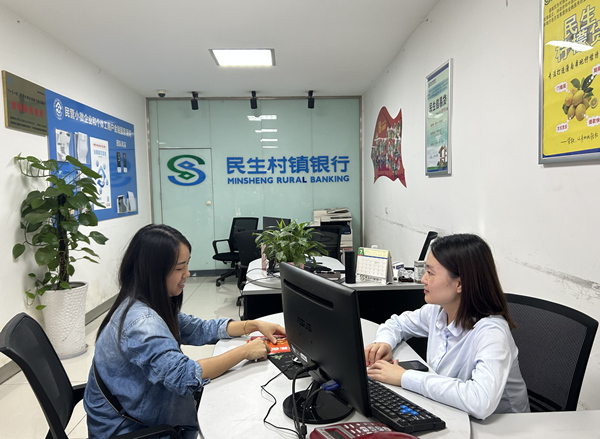 潼南民生村鎮銀行工作人員為受災客戶講解再貸款政策。人行重慶市分行供圖
