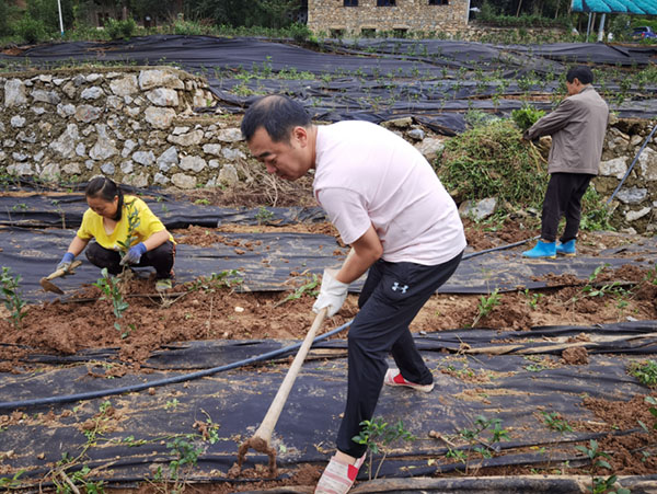 廖國棟和村民們在田間干活。民生銀行重慶分行供圖