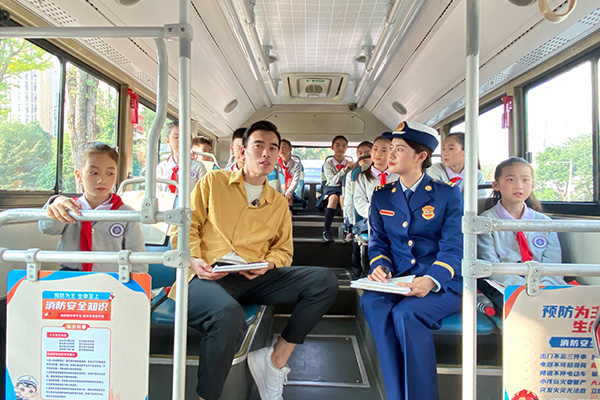 活動現場,主持人還分別連線了穿梭在城市道路上的“119路”消防主題公交車和 “火焰藍”號消防主題專列及重慶消防救援總隊水上支隊消防科普基地,向現場人員展示了具有重慶城市特色的消防安全教育陣地。