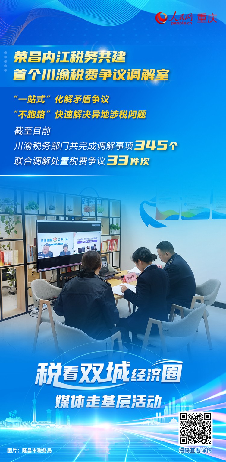 如今,在內江、榮昌兩地稅務部門先行先試的基礎上,四川省稅務局聯合重慶市稅務局將這一做法在川渝毗鄰地區廣泛推廣,資陽—大足、瀘州—永川—江津、合川—廣安—長壽、潼南—遂寧等地稅務部門紛紛成立川渝稅費爭議調解室,為兩地納稅人繳費人提供精準高效的調解服務。
