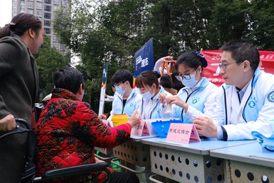 福祿鎮衛生院在院外開展“了解風險,了解應對”糖尿病義診活動,志愿者為前來咨詢的群眾免費測量血壓、檢測血糖,并檢測結果給予醫療保健、生活方式方面的建議。