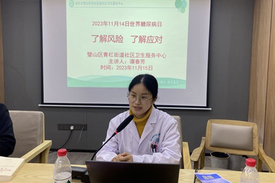 11月15日,青杠街道社區衛生服務中心走進青杠街道中興村開展“了解風險,了解應對”糖尿病知識講座,活動邀請璧山區婦幼保健院醫生譚春芳從糖尿病的診斷、危害及治療等3個方面講解健康知識,志愿者現場發放糖尿病健康宣傳資料,有效增加了村民對糖尿病的認識和了解。