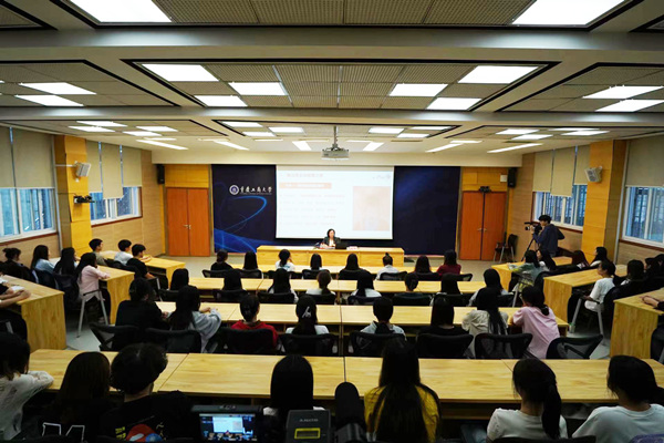 交通銀行重慶市分行黨委委員、紀委書記張穎到重慶工商大學開展主題授課。交行重慶市分行供圖