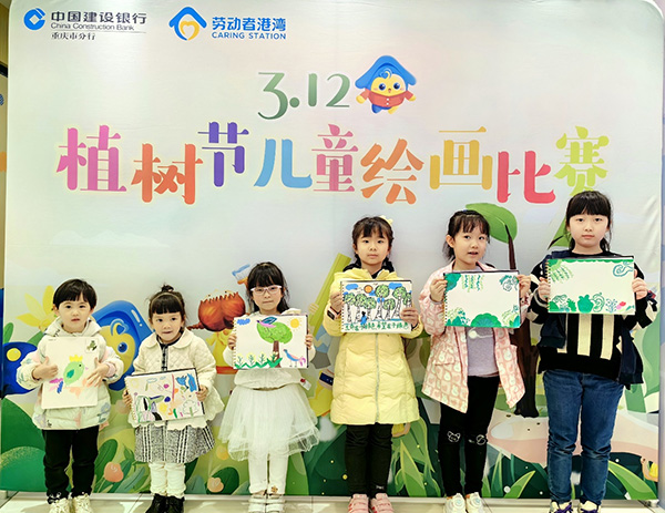 建行重慶渝中解放碑支行開展“勞動者港灣”植樹節兒童繪畫比賽。建行重慶市分行供圖