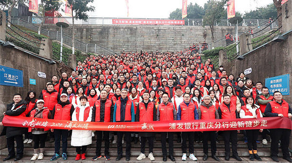 近日,浦發銀行重慶分行組織開展“金龍獻瑞 浦發相隨”迎新健步走活動,倡導“綠色、低碳、健康、環?!鄙罾砟?,搭建與客戶交流、共促共贏平臺,增強員工凝聚力和向心力,共同開啟新一年新征程。