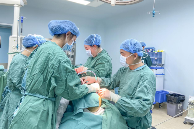 術中,王江允教授和張朝梅主任在完成耳廓再造Ⅱ期手術后,將骨導助聽器植入軒軒頭皮下,固定于顱骨上,手術非常順利,雙側耳廓再造Ⅱ期手術和聽力重建原本需要2次手術,如今1次完成,用時短,損傷最小。