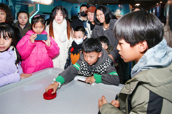 在“傳統龍”板塊,觀眾可以了解記里鼓車測量里程原理,體驗文字拓印,感受古人的匠心和智慧;“科技龍”板塊,觀眾通過動手組裝潛水艇模型,學習了解“華龍一號”和“蛟龍號”的科普知識;“未來龍”板塊,觀眾通過皮影戲演繹、繪畫等形式,寄托對龍年的美好祝福與希望;“科趣新春”游園活動板塊則將科學制作與趣味游園相結合,親子家庭在導電實驗、搭橋游戲、趣轉陀螺等充滿趣味性和挑戰性的互動游戲中,體驗趣味科學的魅力,享受新春活動的歡樂時光。