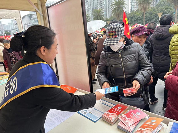 為市民發放宣傳折頁。民生銀行重慶分行供圖