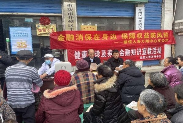 建信人壽重慶分公司萬州中支攜手建設銀行鄉村振興駐村第一書記,走進鄉村振興幫扶村,結合“健康小屋”,特邀外科醫生為村民量血壓、測血糖和心電圖檢查,還為村民免費發放洗手液、防護口罩等用品,以實際行動踐行消費者權益保護工作及惠民養老的責任擔當。