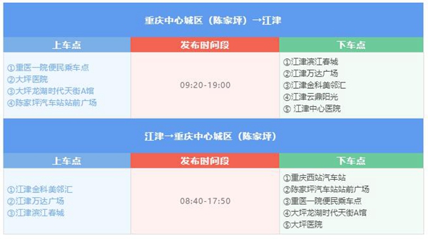 城際快客:“重慶中心城區?江津”新增陳家坪方向線路