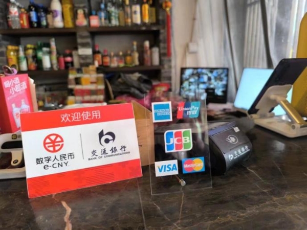 張貼外卡受理標識及數字人民幣受理標識。交行重慶市分行供圖