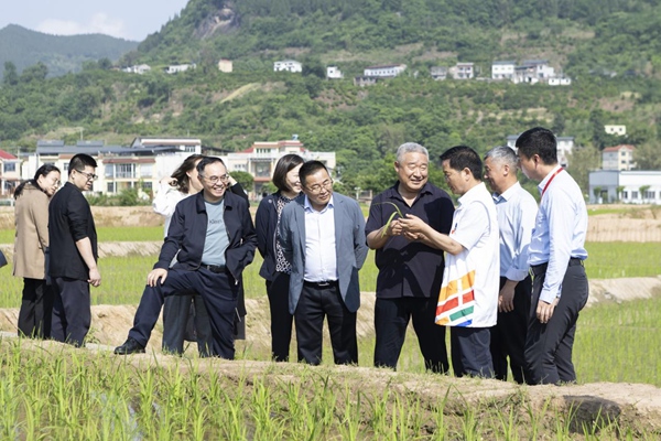 陳溫福院士一行查看水稻生長情況。重慶市人力社保局供圖