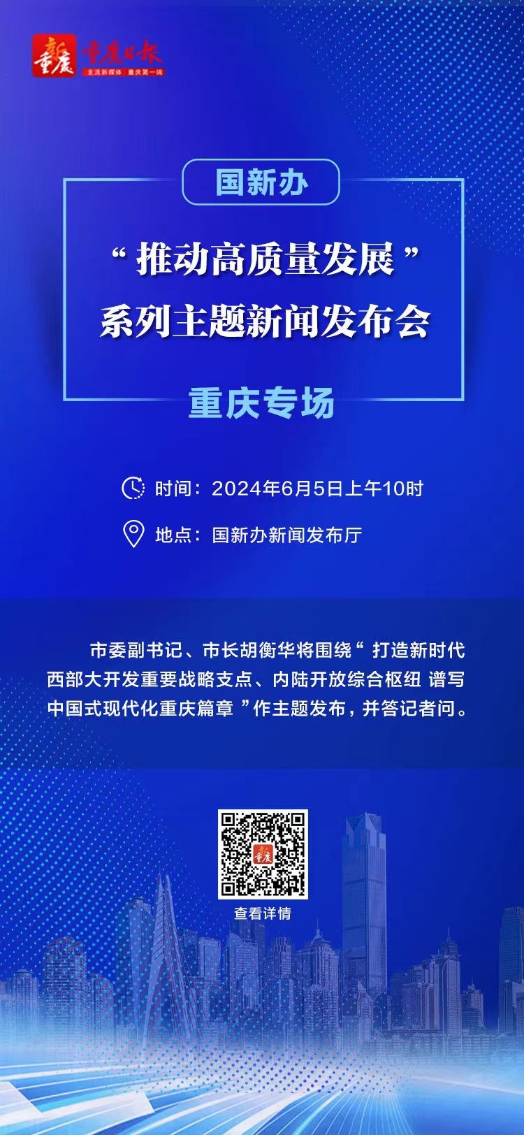 國新辦“推動高質量發展”重慶專場發布會將于6月5日上午舉行