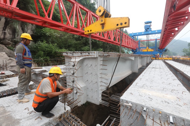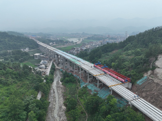 人民網重慶6月24日電 (陳琦、劉敏)6月24日15時許,隨著萬開達高速公路(重慶段)寨子坡大橋最后一片T梁架設就位,標志著萬開達高速公路(重慶段)首座橋梁實現順利貫通。