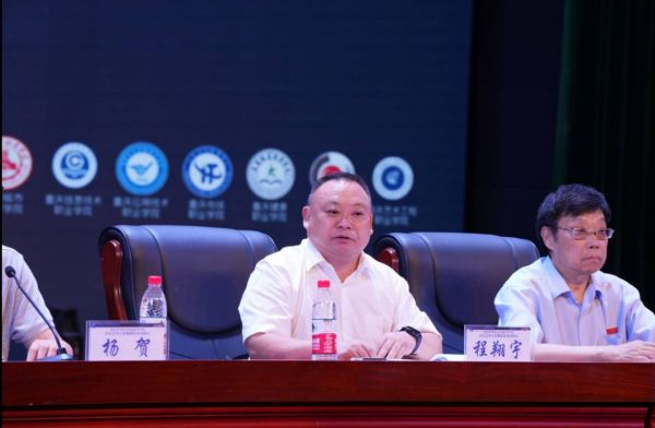 重慶市教委體育衛生藝術教育處處長程翔宇講話。重慶人文科技學院供圖