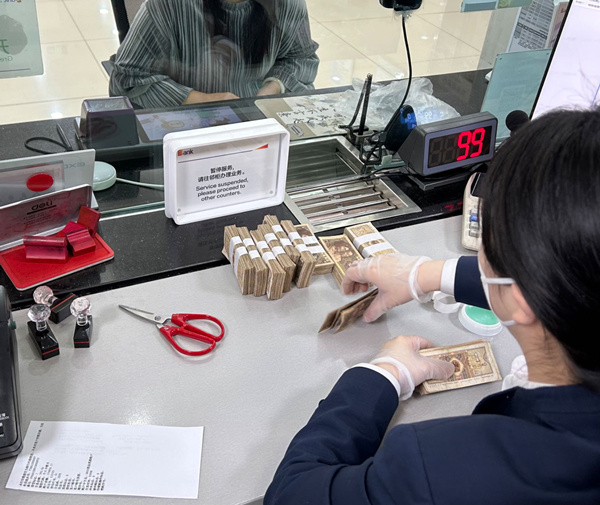 光大銀行重慶巴南支行工作人員為客戶兌換零鈔。光大銀行重慶分行供圖